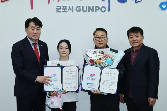 하은호 군포시장, 동계아시안게임 금메달리스트 김채연 · 이채운 격려