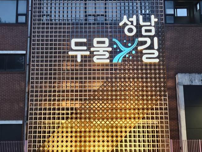 `성남 두물길`이라는 이름은 성남을 가로지르는 두 물줄기, 탄천과 동막천이 만나는 지형적 특성을 반영해 붙여졌다. 동측 탄천 방향 출입구를 통해 입장하면, 약 9미터 높이의 `아트담장` 조형물을 감상할 수 있으며, 어린이 숲놀이터, 소풍마당, 꽃대궐마당, 담빛쉼터 등을 지나 서측 동막천 출입구로 이어지는 산책 동선을 따라 걸을 수 있다.