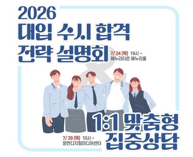 신청 대상은 관내 수험생과 학부모이며 8일 오전 10시부터 `양천구 평생학습포털`에서 총 90명을 사전 신청 받는다. 상담료는 전액 무료다.