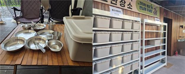 캠핑장 이용객은 체크인 시 안내소에서 스테인리스 재질로 구성된 4인용 다회용기 세트를 무료로 대여받을 수 있으며, 세트에는 볼, 앞접시, 넓은 접시, 컵, 수저 등이 포함된다. 사용 후에는 음식물만 비우고 물로 헹군 뒤 간단히 반납하면 된다.