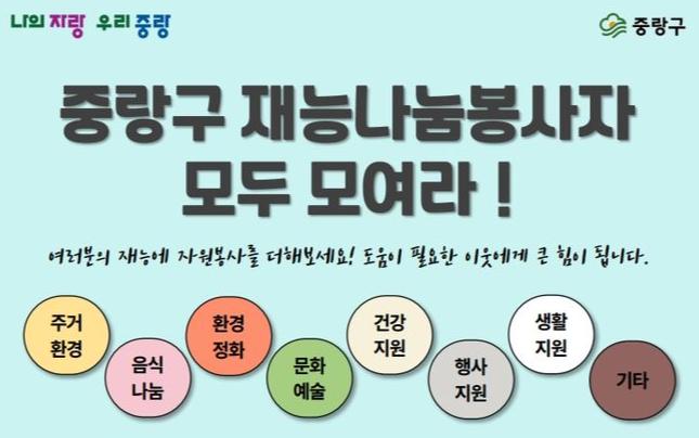 중랑구가 어려운 이웃에게 희망을 전달할 재능나눔봉사자를 모집한다. 이는 모든 구민이 서로 돕고 나누는 문화를 형성하고, 전문적인 재능을 가진 봉사자들을 통해 지역사회의 복지 향상을 도모하기 위해 마련되었다.