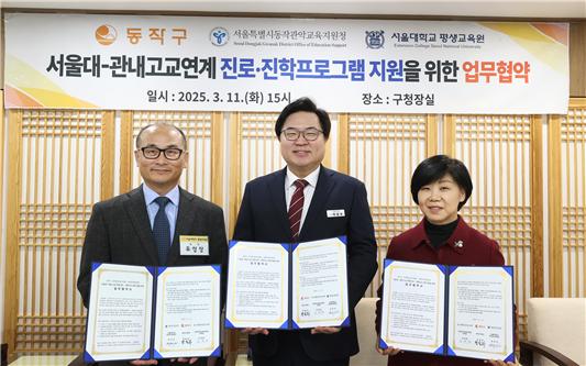 서울 동작구(구청장 박일하)가 고교학점제 전면 시행에 발맞춰 서울대학교 평생교육원과 협력해 ‘서울대-고교 연계 진로‧진학 프로그램’을 진행한다.