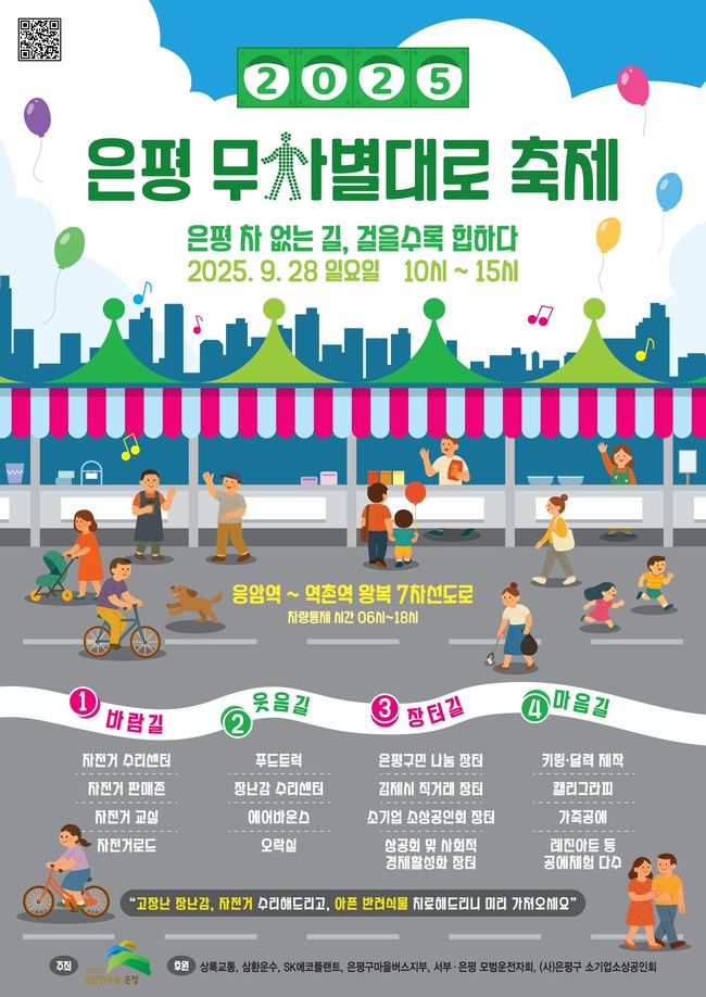 김미경 은평구청장은 “차 없는 거리는 단순히 차량을 멈추는 공간이 아니라 주민들이 걷고 즐기며 서로 어울리는 새로운 문화 공간”이라며 “이번 축제를 통해 구민이 함께 걷고 즐기면서 은평의 지속가능한 미래를 만들어가길 바란다”고 말했다.