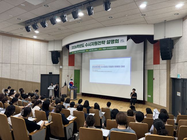 노원구 26학년도 수시지원전략 설명회 사례.서울 노원구(구청장 오승록)는 20일 정시 지원 전략을 고민하는 수험생들을 위해 설명회와 1:1 개별 상담을 운영한다고 밝혔다. 이번 지원은 최근 수능 지원자 증가와 주요 대학 정시 모집 인원 변동이 적어 효과적인 지원 전략이 요구되는 상황에 대응하기 위해 마련됐다.