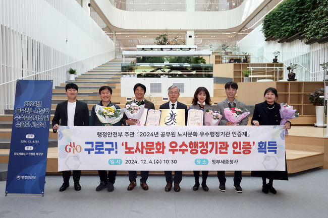 구로구가 공무원노동조합과 함께 4일 정부 세종청사에서 열린 `2024년 공무원 노사문화 우수행정기관 인증제` 심사에서 서울시 25개 자치구 중 유일하게 우수행정기관으로 선정됐다.