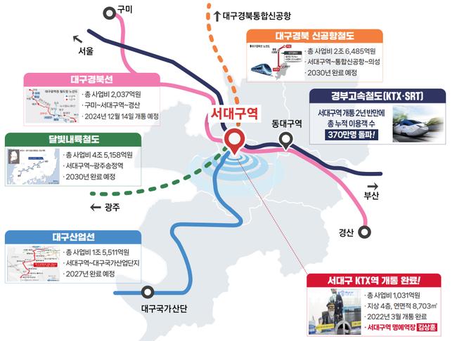 아울러 서대구역이 위치한 대구 서구는 ▲경부선 ▲대구-광주 달빛내륙철도 ▲대구산업선 ▲신공항철도 ▲대경선까지 5개 철도 노선이 연결되는 철도 교통의 허브이자 대구시의 관문으로 발돋움하게 될 예정이다.