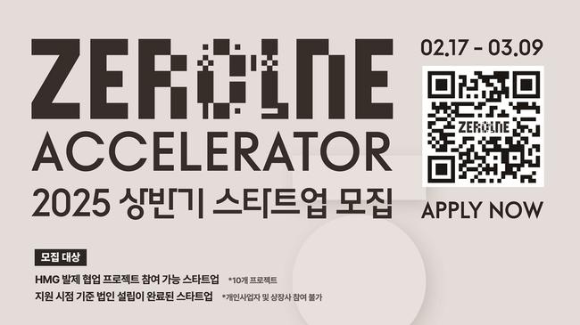현대자동차그룹, 2025년 ‘제로원 액셀러레이터’ 스타트업 모집 - 현업팀과 우수 스타트업 간 협업 네트워크 구축해 다양한 혁신기술 발굴 및 육성 - 2/17(월)부터 3/9(일)까지 공식 지원 홈페이지 통해 희망 스타트업 모집 실시 - 최종 선발 스타트업 대상 프로젝트 개발비 지원, 제로원 펀드 지분 투자 대상 선정 등 혜택
