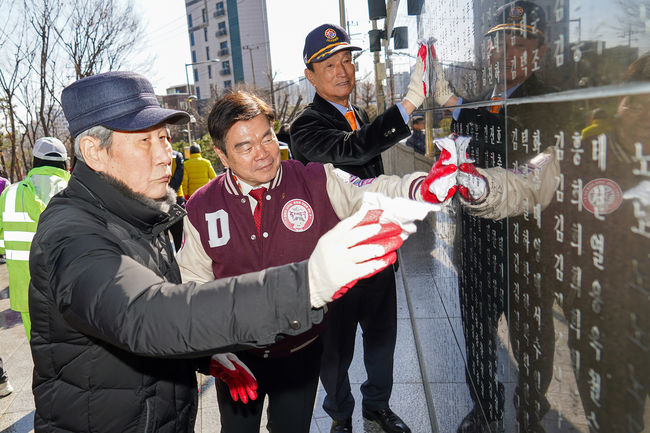 서울 동대문구(구청장 이필형)는 3·1절을 사흘 앞둔 26일, 전농동 마을마당(전농동 150-62)에 위치한 참전유공자명비 환경 정비를 실시했다.