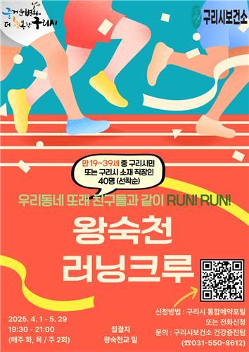 구리시(시장 백경현)는 청년들의 신체 활력과 정신 건강 증진을 위해 `왕숙천 러닝크루`를 운영한다고 밝혔다.