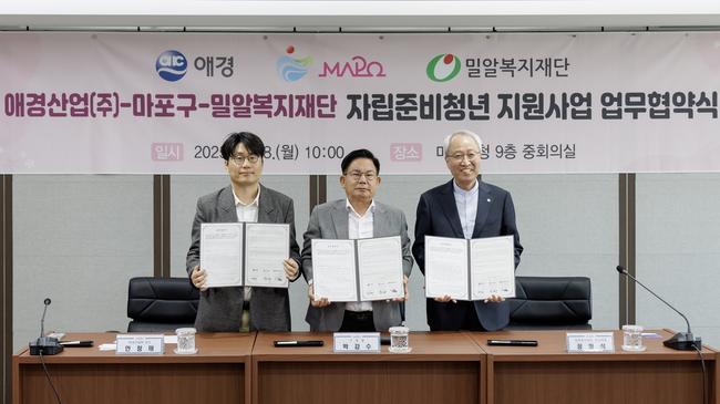 마포구(구청장 박강수)는 4월 28일 마포구청 중회의실에서 애경산업㈜(대표이사 김상준), 밀알복지재단(이사장 홍정길)과 함께 `자립준비청년 지원사업` 추진을 위한 3자 업무협약을 맺었다.