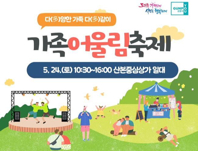 군포시는 `가정의 날과 세계인의 날`을 기념해 5월 24일(토) 산본로데오거리에서 `다(多)양한 가족 다(多)같이 가족어울림축제`를 개최한다.