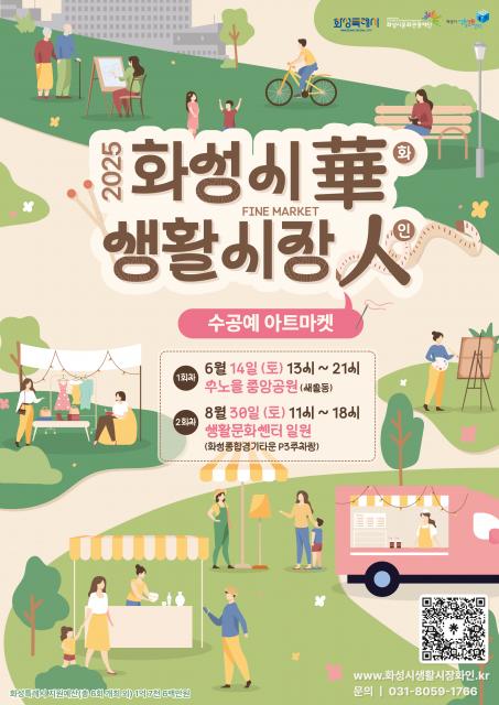 화성시문화관광재단(대표이사 안필연)은 수공예 아트마켓 생활시장華(화)人(인) 1차 정기마켓을 오는 6월 14일(토) 수노을중앙공원에서 개최한다.