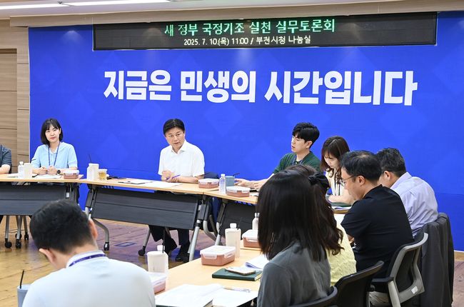 조용익 부천시장이 7월 10일 부천시청 나눔실에서 ‘새 정부 국정기조 실천 실무토론회’를 열고 7급 실무직원 20여 명과 함께 시정의 방향성과 정책 실행 방안에 대해 활발히 논의했다. 이번 토론회는 새롭게 출범한 이재명 정부의 국정 기조에 부응하고자 기획된 것으로, 실무자의 현장 경험을 시정에 적극 반영하기 위한 자리로 마련됐다.