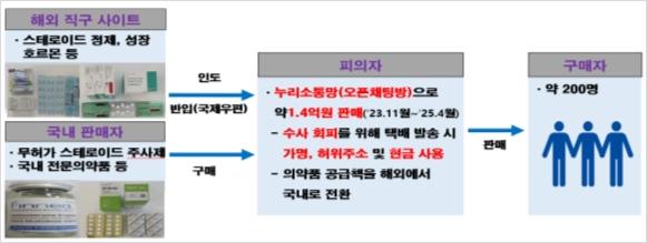 SNS 오픈채팅방 통해 1.4억 원 상당 무허가 스테로이드 불법 판매 적발 - 전 헬스트레이너, 성장호르몬 포함 전문의약품 무단 유통 - “심각한 부작용 초래…사용 말고 즉시 폐기해야” 식약처 경고