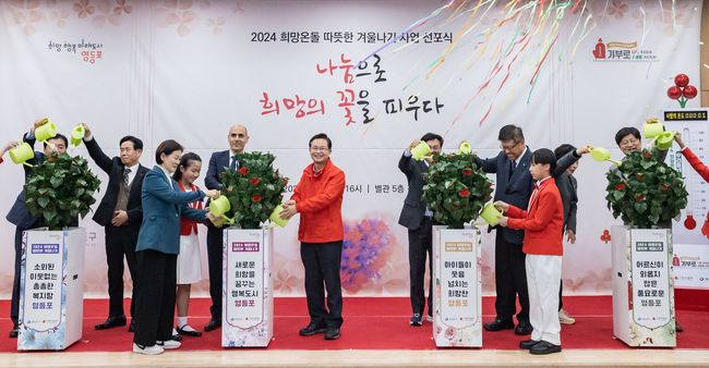 지난해 희망온돌 따뜻한 겨울나기 사업선포식에서 매직트리에 물을 주고 있는 최호권 영등포구청장 ‘희망온돌 따뜻한 겨울나기 사업’은 구와 서울 사회복지 공동모금회가 함께 지역사회의 어려운 이웃을 돕고, 온기를 전하기 위해 매년 진행하는 ‘이웃 돕기 모금’ 캠페인이다.