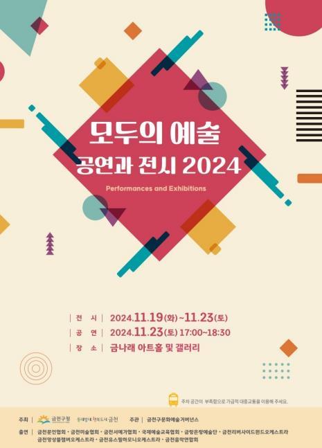전시와 공연이 함께 열려 주민들이 다양한 문화행사를 즐길 수 있다. 전시는 19일부터 23일까지 금나래갤러리에서 열리며, 공연은 11월 23일 오후 5시부터 6시 30분까지 금나래아트홀에서 진행된다.