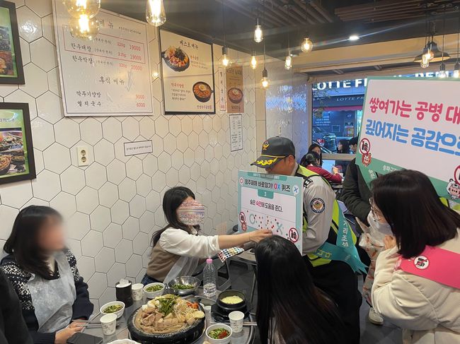 지난 14일에는 송파구 대표 먹자골목인 방이맛골 일대에서 송파구보건소, 송파경찰서, 송파정신건강복지센터, 한국외식업중앙회 송파구지회 등 4개 기관이 참여하는 합동 거리 캠페인이 열렸다.