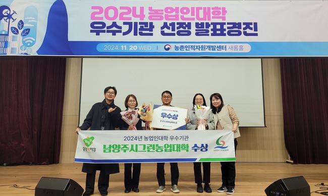 남양주시농업기술센터(센터장 조성기)는 지난 20일 `2024 농업인대학 운영 우수기관 선정 발표평가 경진`에서 우수상을 수상했다고 밝혔다.