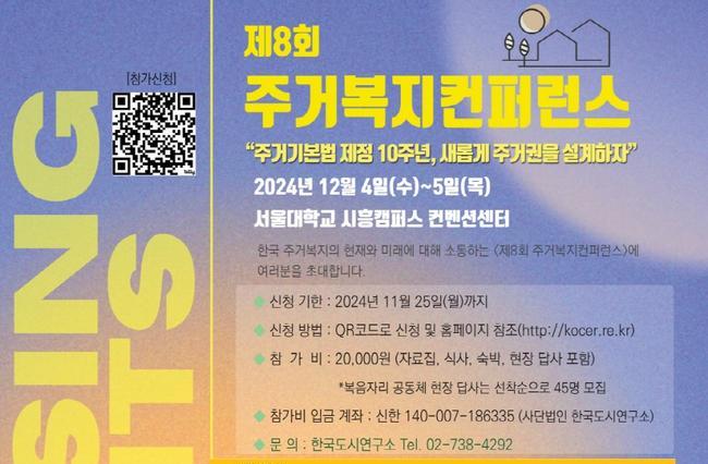 이번 컨퍼런스는 한국도시연구소가 주관하고, 시흥시와 주거복지컨퍼런스 조직위원회를 비롯해 총 17개 기관이 공동주최한다. 행사에서는 주거복지 관련 단체 및 현장 활동가, 학계, 연구자, 공공기관 등 200여 명의 전문가가 참석해 발표와 토론을 이어간다. 특히 이번 행사는 민ㆍ관ㆍ공 소통의 장을 강화하고, 협력의 장을 여는 계기가 될 전망이다.