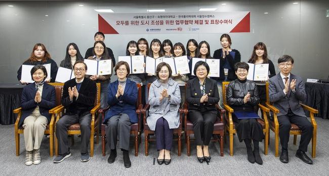 이날 협약식에서는 공공공감 디자인에 참여한 학생들과 지도교수에게 용산구청장 명의 표창도 전달했다. 프로젝트를 통해 용산구 도시디자인 경쟁력 향상에 기여한 공로다.
