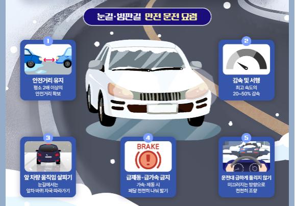 행정안전부는 겨울철 눈과 서리로 인한 빙판길 교통사고가 증가함에 따라, 감속 운전과 안전거리 확보 등 운전자의 각별한 주의를 당부했다.